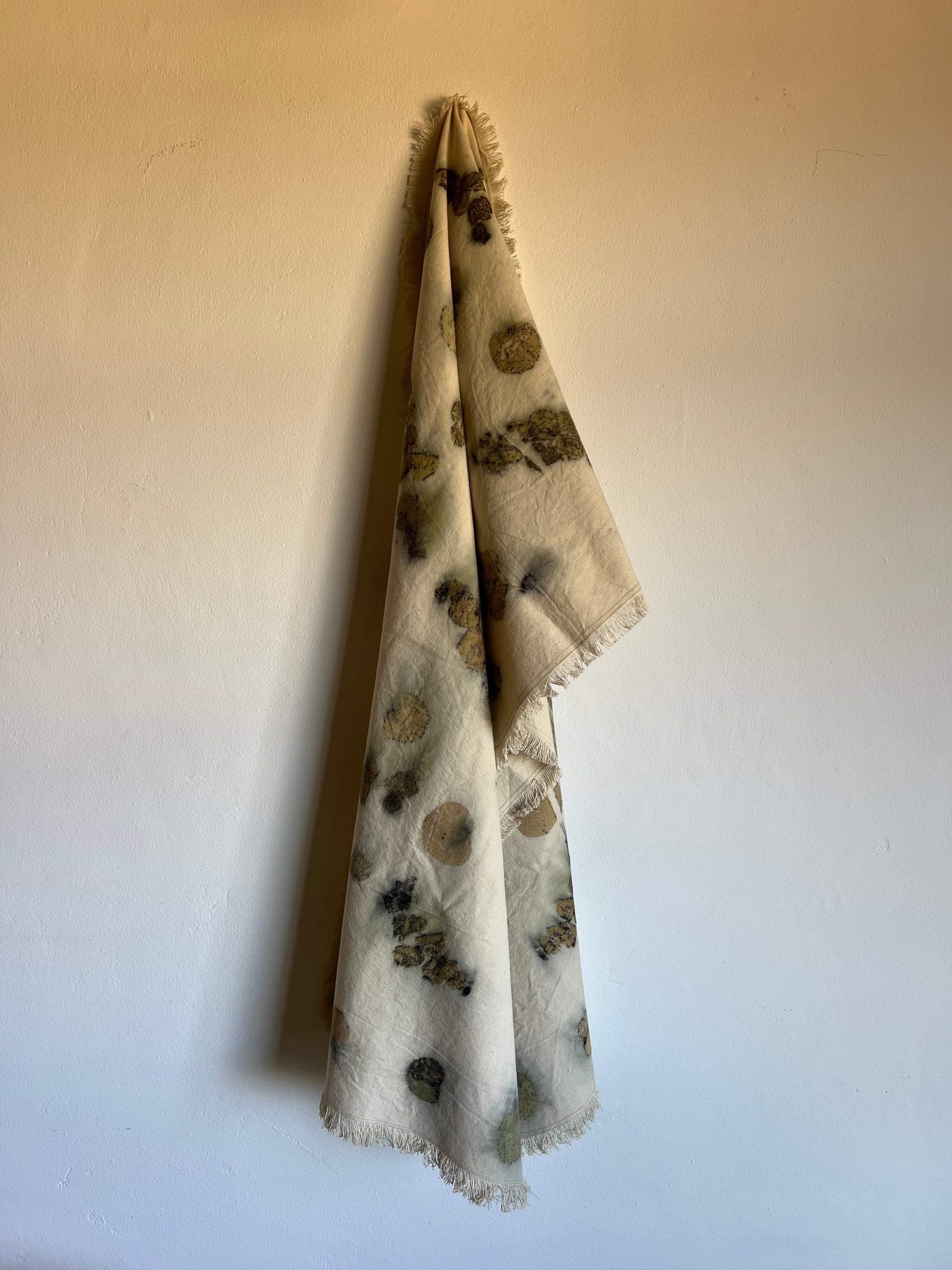 Bring natural texture and subtle botanical charm to your table with this eco-printed cotton table runner. Handcrafted using Pennygum leaves harvested from The Floristas Flower Farm, each runner features organic patterns unique to every piece. The fringed edges add a relaxed, artisanal finish.